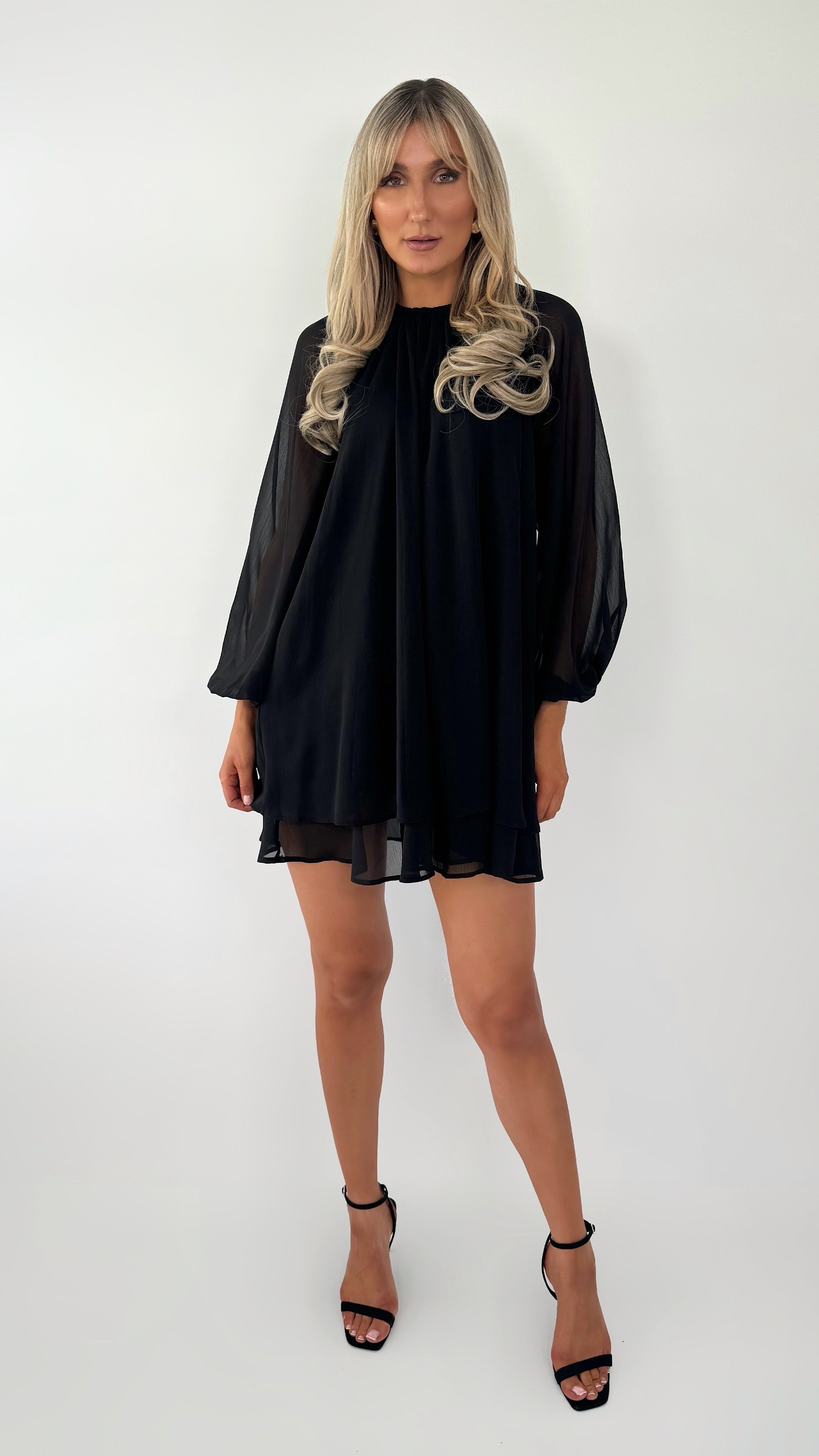 Kate Loose Chiffon Mini Dress - Black